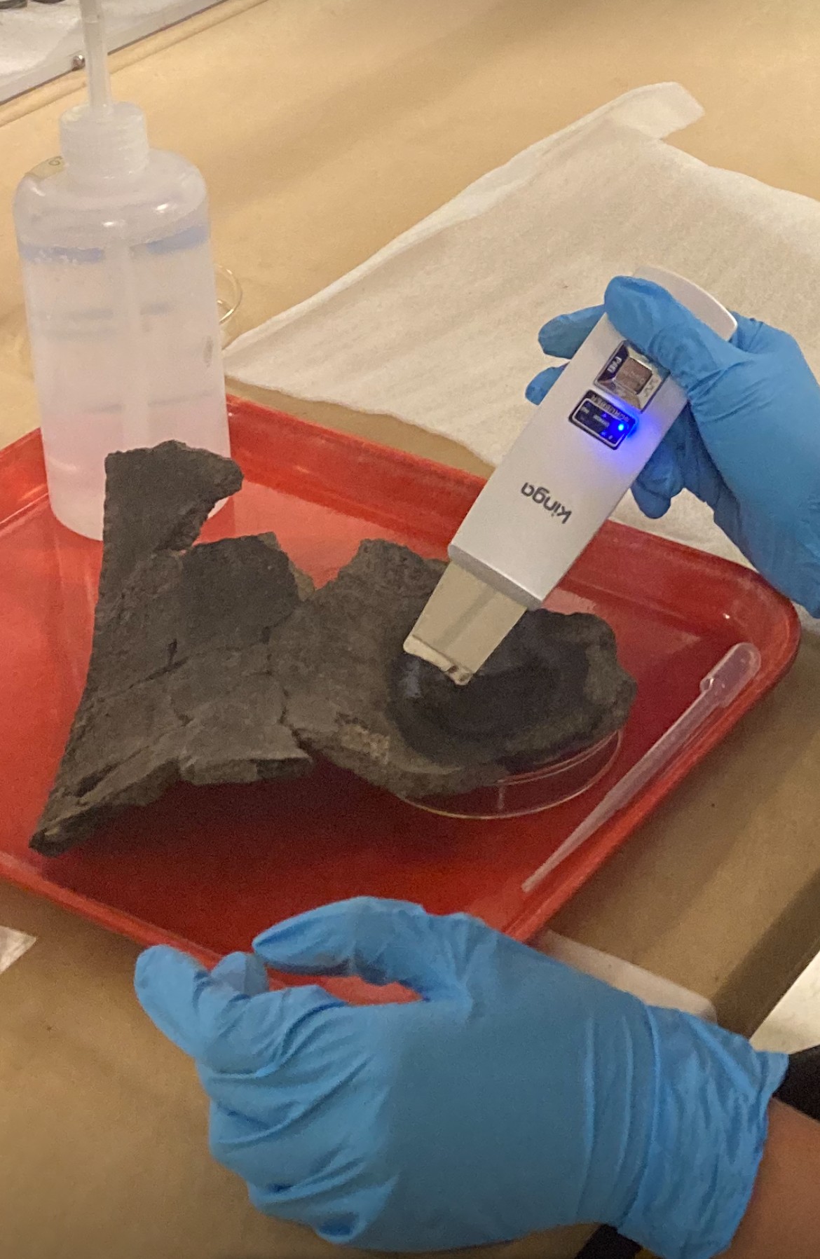 Beginning in 2022, I worked as a Research Assistant on the CADF project to document food residues present in Indigenous pot sherds. These pots sherds are held at Sustainable Archaeology McMaster and were excavated around the Ohròn:wakon area (Hamilton, Ontario) from the 1960s - present. Using a non-destructive approach I retrieved phytoliths and starch grains from the pot sherd surfaces, revealing ancestral Indigenous cuisine practices from this area (publication in preparation).